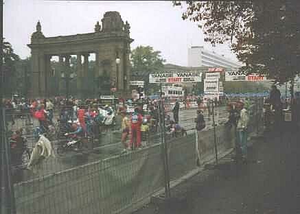 Jürgen Walter in Berlin. Hier der Startbereich beim Berlinmarathon 1990. Am Start befanden sich ca. 27.000 Läufer um erstmalig nach der Teilung wieder gemeinsam durch das Brandenburger Tor zu laufen. Ein 180 Grad Blick zum Zoo Berlin